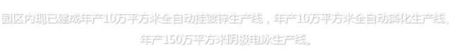特點(diǎn): 采用美國(guó)PPG公司的環(huán)保型陽離子陰極電泳涂料(符合歐盟ROHS環(huán)保指標(biāo)要求),產(chǎn)品鹽霧性、附著力、耐沖擊、耐彎曲性等方面居于同行業(yè)領(lǐng)先地位。 產(chǎn)能: 150萬平方米/年。